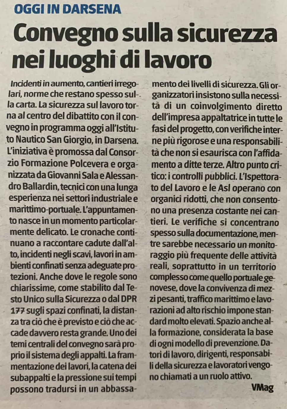 Il 26 novembre 2025 si è tenuto il convegno “La sicurezza sul lavoro (safety) nel settore marittimo e portuale”, un appuntamento ricco di spunti, professionalità e grande partecipazione.